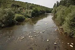 The Osam (Bulgarian: Осъм [ˈɔsɐm]) is a river in northern Bulgaria. Its drainage basin is between that of the river Vit to the west and the Yantra system to the east.[2] The river has two main tributaries in its upper course: the Black Osam takes its source from the foot of Levski Peak in the Balkan Mountains, at an altitude of 1,821 m (5,974 ft), while the White Osam has its source on the northern slopes of the Kozya Stena peak. In Troyan, the black and white Osam join. It runs north towards Lovech, then north-east until Letnitsa and Levski, where it turns north-west until it flows into the river Danube 5 km west of the town of Nikopol. The ancient name of the river was Assamus.