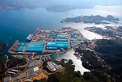 The company's main offices and shipyard are located in Oshima, on Oshima island, Saikai City, Nagasaki Prefecture, close to the entrance to Sasebo bay. Because of the shipyard presence, Oshima is nicknamed "the town of shipbuilding', although the island has many natural features.