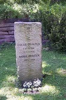 Oskar Braaten and Nanna Thorvaldsen were married in 1910. Oskar and Nanna had a son Bjorn in 1912, daughter Berit in 1918. In 1921, the family moved to Ullevål Hageby, a residential area in the Nordre Aker borough of Oslo.