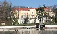 Kaufmann also worked on private projects. In 1917 he accepted the commission by Leo Lewin for the interior of his villa in Breslau.[1] Some of Kaufmann's first private commissions consisted of a series of villas built in and around Berlin, many of which still survive. Kaufmann, however, soon grew to dislike designing villas and other single-family dwellings, as they did not prove financially profitable enough for his firm. He returned to theater building and constructed two notable theaters during this time, the Theater am Kurfürstendamm and the Krolloper. The latter took nine years to build, from 1920 to 1929.