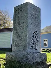 The Osmond O’Brien Shipyard built vessels from 1856 until 1918 in Noel, Nova Scotia. Having produced 20 wooden ships, the shipyard was one of the most successful rural shipyards in Atlantic Canada.[1] The most prominent ship captain of the shipyard was Captain William Scott, who became known as the Mariner of Minasville, after which a film short was made.[2][3] The most successful ships were the Piskataque (built 1872) and the Amanda (built 1883).[4] Sixteen years after the Schooner Hibernia was built, the last ship - the J. Miller - was built during the brief wooden ship revival of World War I (1918).[5][6][7] A monument was erected in Noel, Nova Scotia to the shipyard and the builders and crew members associated with the shipyard in 2005.