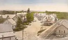 Although the surface of the town is "rough and uneven, and in some parts rocky and mountainous," farmers found it suitable for pasturage, as well as for cultivating wheat and potatoes. Principal goods were produce, lumber and cattle. In 1859, when the population was 2,123, Ossipee contained twelve sawmills, five gristmills, twelve clapboard and shingle mills, one bedstead factory, one door factory, a sash and blind factory, one paper mill and four tanneries.[5] The Portsmouth, Great Falls & Conway Railroad in 1871 reached Ossipee Corner, with service extended in 1875 to Center Ossipee. The trains brought commerce and tourists, helping the town develop as a summer resort. Railroad service, however, would be discontinued in 1961 for passengers, and in 1972 for freight.[6]