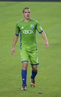 Osvaldo Alonso Moreno (born November 11, 1985) is a Cuban former professional footballer who played as a defensive midfielder. He defected from Cuba in 2007 and became a U.S. citizen in 2012. During his decade-long career with Seattle Sounders FC, Alonso played as a defensive midfielder who was known for his style of harassing, tackling and covering the field, while getting forward to supply enough offense to be considered a threat.[2] This style of play had earned the nickname "Honey Badger" from Seattle fans for his fearless, aggressive playing style.[3]