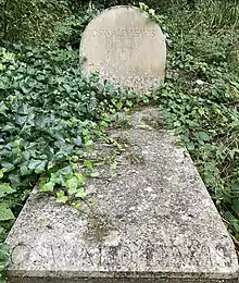 He died at Beechwood on the 12th February 1966, aged 78,[3] and is buried on the western side of Highgate Cemetery, on the main path near the entrance to the Egyptian Avenue.