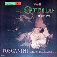 The 1947 recording of Verdi's Otello by Arturo Toscanini and the NBC Symphony Orchestra and chorus is regarded as one of the most notable early Verdi opera recordings.[1] The role of Otello was sung by Ramón Vinay, Desdemona by Herva Nelli, and Iago by Giuseppe Valdengo, and Cassio by tenor Virginio Assandri.[2][3][4]