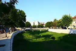 Otinja (Macedonian: Отиња) is a river that bisects the city of Štip, North Macedonia and is a tributary to the Bregalnica river. The river is of medium length, but the last part that flows through the city often dries up in the summer months as the water is blocked upstream for irrigation of the farms and vegetable gardens north of the city. The last 3 km of the river, that pass through the center of Štip, are bounded by a quay built of stone and mortar, which is criss-crossed by several bridges, including the medieval Stone Bridge of Štip (Macedonian: Камен Мост), and is an integral part of the Štip downtown.