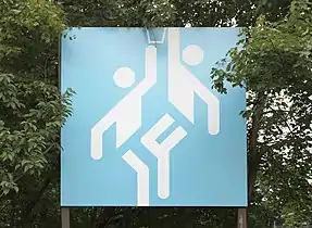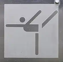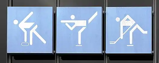 Basing his work in part on iconography for the 1964 Games, Aicher created a set of pictograms meant to provide a visual interpretation of the sport they featured so that athletes and visitors to the Olympic village and stadium could find their way around.[2] He created pictograms using a series of grid systems and a specific bright colour palette that he chose for these Games. These designs were directly influential on the DOT pictograms, developed in 1974 by the United States Department of Transportation, which applied the same principles to standard public signage such as those for toilets and telephones; the DOT pictograms have in turn been used around the world. The series of pictograms he created was not a simple task; the goal of each pictogram was to function as a clear sign of the activity it represented while simultaneously maintaining its universal comprehension.[3]