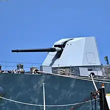 The OTO 127/64 LW gun mount on Italian OPV Francesco Morosini