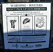 Zebra mussels were first introduced into the Great Lakes in the mid- to late-1980s from ballast discharged from freighters originating in the Black and Caspian Sea region of eastern Europe and western Asia. They first became established in Otsego Lake in 2007, and by 2010, carpeted most of the lake trout spawning areas. The mussels impact fry numbers by covering shallow rocky shoals and deep water rocks, where they spawn. The mussels, in high densities, block eggs from being protected in the rocks, making the eggs more vulnerable to predators.[52] Native freshwater pearly mussels have also been negatively impacted by zebra mussels. Six different species of clams once occupied the soft bottoms, but as of 2016, no live clams were observed.[2] In a 2013 study of the lake, other invasive species were found, including eurasian milfoil, japanese knotweed, purple loosestrife, curly leaf pondweed, rusty crayfish, and starry stonewort. In August 2020, the BFS announced that quagga mussels were discovered in the lake.[53]