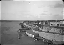 Northward view of the Ottawa River from Nepean point in 1918 with the Ketchum Boat Manufacturing in the foreground and the Ottawa Rowing Club in the background.