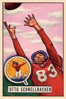 ![]() Schnellbacher on a 1951 Bowman football card. | |||||||||||||