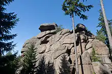 The rocks stand at a height of 584 metres above sea level[2][3] and are 36 metres high.[2] They are made of coarse-grained granite and have been weathered to form a tor. On 27 July 1892 there was a ceremony to mark the completion of public access to the top, which consisted of several iron ladders.[2] These ladders were replaced after the Wende in 1990. In addition the Ottofels is used for rock climbing by mountaineers.