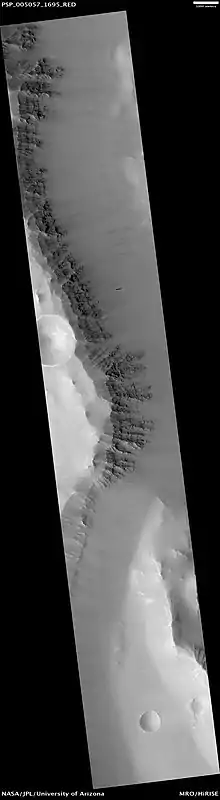 - ↑ Moore, J. and A. Howard. 2005. Large alluvial fans on Mars. Journal of Geophysical Research. 110. E04005