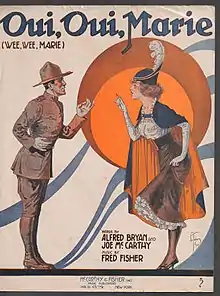 Oui, Oui, Marie is a 1918 song composed by Fred Fisher with lyrics written by Alfred Bryan and Joe McCarthy.[1] It was published by McCarthy & Fisher Inc.[1] The sheet music cover featured an illustration by Andre De Takacs.[1] The song was in the top 20 charts from September 1918 to February 1919 and reached number 10 in December. It was recorded by Arthur Fields, Irving Kaufman, and Rachel Grant & Billy Murray.[2] The sheet music can be found at the Pritzker Military Museum & Library.[3]