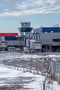 The construction of the airport runways in Oulunsalo began in 1949 and was completed in 1953 after the previous airport in Oritkari became too outdated for modern aircraft.[4] In 1953 the airport only consisted of gravel runways and it wasn't until 1958 that the terminal and ATC building were built and the runways were paved. Finnair back then "Aero" operated routes from the airport with DC-3 aircraft and started flights with Sud Aviation Caravelle jets from Oulu in 1964. The current terminal building was built to replace the old one in 1973 and expanded/renovated in 2002 and 2011 with the old one being demolished in the fall of 2005. The second runway of the airport was removed in the early 2000s and the current ATC tower was built in 1998.