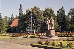 The cemetery includes a military cemetery section for soldiers fallen in the Second World War. The war graves area with a war memorial was inaugurated in September 1952. The war memorial, The Battle Has Ended (Finnish: Taistelu on päättynyt), was created by sculptor Oskari Jauhiainen.[7]
