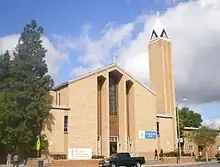 Our Lady of the Valley is a large Catholic church and school located in the Canoga Park section of Los Angeles, California. It is the oldest parish in the western San Fernando Valley, having been established in 1921. When the parish was established, the western Valley was sparsely populated, and most of the 620 parishioners were involved in agriculture with livestock or walnut and orange groves. At the time of its formation, the parish's boundaries covered 400 square miles (1,000 km2) from the Pacific Ocean to the south, the Ventura County line to the west, White Oak Avenue to the east, and the Santa Susana Mountains to the north. In the years after World War II, the San Fernando Valley shifted from agriculture to residential communities, and the Catholic population also swelled. The 400 square miles (1,000 km2) served by Our Lady of the Valley were carved up among nine sister parishes.[1] Though its territory has been reduced to four square miles, the parish has grown from 620 parishioners to over 4100 families.