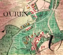 The only known depiction of Ouren Castle is a pen drawing according to a lost water colour by Joseph-Ernest Buschmann from the first half of the 19th century.