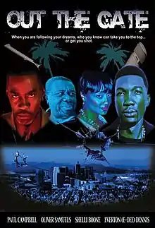 Out the Gate is a 2011 Jamaican action film that follows Everton Dennis, played by Everton Dennis as he leave his home in Jamaica to make it big in the United States in music. It stars Paul Campbell, Oliver Samuels, Shelli Boone, and Everton Dennis, was written by Qmillion and Everton Dennis and directed by R. Steven Johnson and Qmillion . The picture had its official limited release in the United States and Jamaica Distributed by Far I Films in 2011 followed by the DVD in 2012. The film was released to theaters in Los Angeles, New York, Atlanta, Toronto, as well as Jamaica.[1] Newspaper Atlanta Daily World wrote the movie "appears to be on its way to becoming a classic."[2]