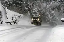 Wintertime view of the Glacier/ Veterans Memorial Highway (the road in "out the road") near Lena Point.