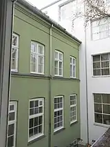 O – Overgaden, or simply Overgaden, is a non-profit contemporary art venue situated at Overgaden Neden Vandet 17 in the Christianshavn neighbourhood of central Copenhagen, Denmark. It hosts approximately eight major exhibitions each year. Constructed in 1887 to designs by Frederik Bøttger, an architect who also worked for Arbejdernes Byggeforening, Overgaden Neden Vandet 17 was originally built for a charity as a public dining facility. In 1893, it was acquired by C. Ferslew & Co. and converted into a printing workshop under the name Centraltrykkeriet. In 1936, it was expanded with a large funkis-style extension on the rear. The art centre opened in 1986. The building was together with Wildersgade 20 on the other side of the block listed in the Danish registry of protected buildings and places in 1989. The extension from 1936 is not part of the heritage listing.