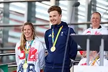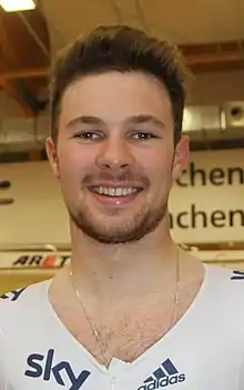 Owain Daniel Doull MBE (born 2 May 1993[6]) is a Welsh road and track cyclist, who currently rides for UCI WorldTeam EF Education–EasyPost. Doull specialises in the team pursuit on the track, and won a gold medal in the discipline at the 2016 Olympics in Rio de Janeiro; as a result, he became the first Welsh-speaking athlete to win Olympic gold.[7]