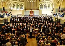 Oxford Harmonic Choir is a large, mixed-voice amateur choir based in Oxford, England. It is the second-oldest non-collegiate choir in Oxford, having been founded in 1921,[1][2] and according to The New Grove Dictionary of Music and Musicians is one of the "institutions of lasting significance to Oxford's musical life that were established during this period".[2] Currently the choir has around 150 singing members and usually performs three concerts annually in either the Sheldonian Theatre or Oxford Town Hall with the Orchestra of Stowe Opera.