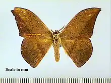 Oxytenis is a genus of moths in the family Saturniidae and subfamily Oxyteninae. They are also known as jigsaw emperor moths. he genus was erected by Jacob Hübner in 1819.[1] During its larval form, it has large eyespots on the front of its head in an attempt to mimic a snake. The larva has unusual, large, almost wing-like, fleshy protrusions on either side.