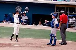 In 1985, Guillén was both the American League Rookie of the Year and The Sporting News Rookie of the Year, while also becoming just the third rookie shortstop in major league history to win a fielding title.[5][6] He became known for his daring, aggressive style of play, as was demonstrated on August 2, 1985, in a game against the New York Yankees.[7] With the game tied 5–5 in the 11th inning, Guillén hit a two-out single and, then proceeded to steal second base.[7] When the next batter hit an infield single, Guillén never hesitated as he rounded third base, catching the Yankees defense off guard and scored the game-winning run.[8]