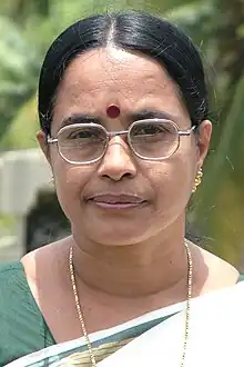 P. Aisha Potty (Malayalam: പി. ആയിഷാ പോറ്റി) is an Indian politician and the MLA of Kottarakkara since 2006. Daughter of Shri N. Vasudevan Potty and Smt. N.J. Parvathy Antharjanam, Aisha Potty is member of All India Lawyers Union National Council. She is also the convener of State Women’s Sub Committee. She won the 2016 assembly election with a huge majority of more than 42,000 votes. She holds a master's degree in Law (LLM).[2]