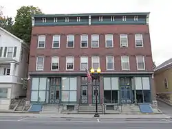 The P.J. Barrett Block is a historic block in Adams, Massachusetts. It is one of the four brick buildings on Park Street along with the Jones Block, Armory Block, and the Mausert Block, opposite the Town Hall. The block was built in roughly 1880, during a period of rapid industrial expansion in Adams. The original uses of the building were to provide retail shops on the ground floor and apartment-style housing above, a common feature of buildings of the period. It has a somewhat utilitarian appearance, which may be reflective of the relative haste in which it was designed and built. The building has a brick face, and the windows on the upper floors have curved pediments.[2] The building was listed on the National Register of Historic Places in 1982.[1]