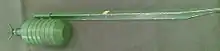 The 'old' version consists of a cylindrical main body with six large fragmentation grooves running around the circumference and two mounting lugs on one side for mounting the mine to a provided metal stake. The 'new' version of the mine is similar, but with a smaller fuze and no fragmentation grooves.