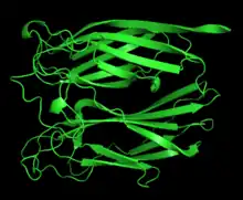 - 1 2 3 4 Norris GE, Stillman TJ, Anderson BF, Baker EN (1994). "The three-dimensional structure of PNGase F, a glycosylasparaginase from Flavobacterium meningosepticum". Structure. 2 (11): 1049–59. doi:10.1016/S0969-2126(94)00108-1. PMID 7881905.