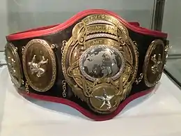 The title, which had originally been classed as a world title, was downgraded to regional status after All Japan joined the National Wrestling Alliance but retained its status as the top All Japan singles title until 1983. In 1989 Jumbo Tsuruta and Stan Hansen would unify this, the NWA United National Championship and the NWA International Heavyweight title to create the Triple Crown Heavyweight Championship. The original belt remained in use as part of the Triple Crown until 2013, when the three belts were replaced by a single belt. As the original top belt in All Japan, its design formed the front plate of the new belt; the other two belts' designs took the sides.[1]