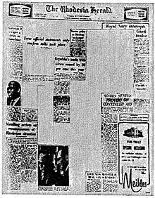 - ↑ "Drastic powers for the Rhodesian Censor", The Times, Wednesday, 9 February 1966, p. 10