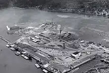 Pacific Reserve Fleet, Olympia was part of the United States Navy reserve fleets in Budd Inlet in Puget Sound off North Olympia, Washington at 47°05′57″N 122°53′41″W / 47.099178°N 122.894769°W. The Reserve Fleet was opened in 1946 to store the many surplus ships after World War II. The mothball fleet was mostly cargo ships used in the merchant marine navy. When opened is had 95 ships, mostly cargo ships, but also troop ships and oil tankers. Shore power was wired to the ships to keep them operational. Some ships there were reactivated for Korean War and Vietnam War. After the Korean War 185 ships were mothballed at the fleet. The fleet was also used to store the United States' surplus wheat in 47 ships starting in 1954. Pacific Reserve Fleet, Olympia closed in 1972, the last 29 ships in the fleet were removed, all but 4 were scrapped. [1][2]
