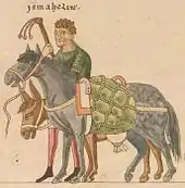 Medieval pack horse and donkey in Hortus Deliciarum, Europe, 12th century, when packing was a major means of transport of goods