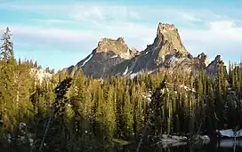 Packrat Peak, at 10,240 feet (3,120 m) above sea level is a peak in the Sawtooth Range of Idaho in the United States. The peak is located in the Sawtooth Wilderness of Sawtooth National Recreation Area on the border of Boise and Custer counties. The peak is located 2.38 mi (3.83 km) north of Elk Peak, its line parent. Warbonnet and Little Warbonnet lakes are in the basin north of the peak.[3][4]
