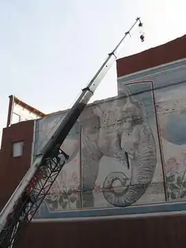 ![]() The mural being demolished in 2008 | |