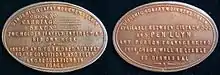 An unusual feature of the railway was the transporter wagons, also referred to as "Host wagons" and to the workmen by the English names "Big Cars" or "Large Trolleys". These 4 ft (1,219 mm) gauge vehicles were flat wagons with two parallel "Quarry Gauge" – 1 ft 10+3⁄4 in (578 mm) – tracks on them.[6][7][8][9] Without loads these vehicles resembled modern day "Container Flats".[10] Loaded Quarry Gauge slate wagons were wheeled onto the transporter wagons and carried four per transporter wagon[11] down to their destination at Penscoins, above Port Dinorwic, where they were wheeled off again onto a Quarry Gauge rope-hauled (until May 1924 chain-hauled) incline[12][13][14] which led down, partly through a tunnel, to the quayside.[15][16]