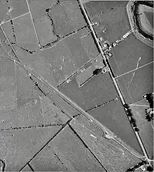 Minister of Public Works, Bob Semple, turned the first sod on 27 January 1938 at Paeroa[19] and about 32 mi (51 km) of the 42 mi (68 km) line had been started[20] when work was abandoned in 1940.[21] Work was still making slow progress in 1950, when a paragraph in the Ministry of Works annual report said 20 private crossings had been formed and metaled and 456 ft (139 m) of culverts installed.[22] In 1954 it was noted the major cost would be a £3100, 30 ft (9.1 m) bridge across the Waihou, the abutments already being in place.[3] Most of the work was still in place in the 1960s.[23]