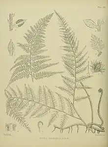 - ↑ Andrew Crowe. A guide to the identification of New Zealand native ferns. Viking, Penguin Books 1997, p. 52.