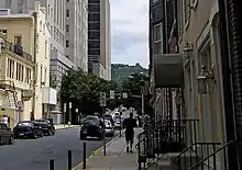 The Pagoda is 28 feet (8.5 m) wide, 50 feet (15 m) long, and 72 feet (22 m) tall. Perched on the edge of a cliff, 620 feet (190 m) above the city and 886 feet (270 m) above sea level,[3] it offers a 30-mile (48 km) panoramic view of the city and the surrounding countryside.[4]