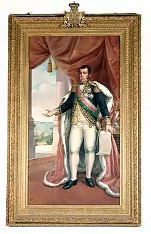 The structure of the Palace of the Commercial Association of Bahia was built on the ruins of the São Fernando Fort, which was demolished between 1814 and 1816.[7][4] The construction was financed by the former governor of Bahia, Dom Marcos de Noronha e Brito, VIII Count of Arcos, and architecturally designed by Portuguese architect Cosme Damião da Cunha Fidié. It was planned by the Commercial Association of Bahia (ACB) to serve as a headquarters for events, dinners, and meetings among the merchants and inaugurated on January 28, 1817, in a solemn act.[8][9][1] Its location was also determined by the governor. In the current building, part of the structure of the old fortress can still be found.[7]