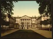 The central body of the building was transformed in 1816–1818 by the architect Charles Vander Straeten to house the States General established by King William I of the Netherlands.[1] The hemicycle built for this occasion at the rear burned down in 1820 and was rebuilt in 1821–22 by Vander Straeten.[2]