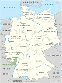 The Franco-German Palatinate Forest-North Vosges Biosphere Reserve (German: Biosphärenreservat Pfälzerwald-Nordvogesen, French: Réserve de biosphère transfrontalière des Vosges du Nord-Forêt palatine) was created in 1998 as the first UNESCO trans-boundary biosphere reserve in Europe. The German part became the 12th of 16 biosphere reserves in Germany[1], and the French part, the 6th of 14 in France.