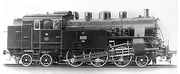 After the Palatine P 5 had proved successful, the Royal Bavarian State Railways (Königlich Bayerische Staatsbahn) decided to procure more of this class in a more powerful version. As a result, the Palatine Pt 3/6 was built from 1911. A total of 19 engines were procured. In 1923 a further 10 of these two-cylinder superheated steam engines were ordered for Bavaria as the Bavarian Pt 3/6. They were deployed on the express train routes between Garmisch-Partenkirchen and Munich. All the engines were taken over by the Reichsbahn, the Bavarian versions being given the operating numbers 77 110–119. One machine was lost during the Second World War. The Deutsche Bundesbahn took over 27 engines and retired them by 1954. One locomotive remained with the East German DR and was retired in 1956.