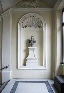 In the Palace there is still a small collection of six portrayed heads – one in the entrance hall past the courtyard and the other five over the stairs – which were part of the collection of the Albertoni Paluzzi family, collectors of ancient artwork. The Paluzzi Albertoni collection was merged in the 1600s with the remarkable Altieri collection, enriching the family mansion and other properties including villas on the Esquilino and at Porta Salaria. The busts to be found today in the Albertoni Spinola palace are "two ancient marble heads – one of a young woman and one of Antinous – mended in part; another ancient marble head – a priest of Isis – reworked in the Renaissance era as a portrait of Publius Cornelius Scipio Africanus; two marble portraits reconstructed during the Renaissance era – one of Julius Caesar and another probably of Hesiod or Zeno of Elea – and a plaster cast of the head of Julius Caesar (probably of the Pacca and not of the Paluzzi family) taken from the statue preserved in the Senatorial Palace on the Capitoline Hill[9]