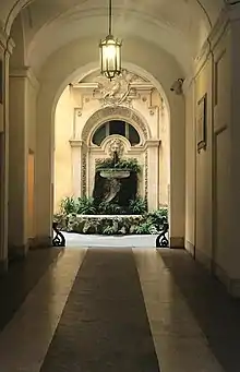 The Palace was originally commissioned by the Orsini family. They had another palace nearby, Palazzo Orsini Taverna, so in 1692 they sold it to Cardinal Capponi. In the early years of the 18th century the palace was bought by Cardinal Carlo Gaetano Stampa and renamed Palazzo Stampa. The stucco ornaments were added at the behest of Carlo Gaetano, who had just become Governor of some papal cities.[1] After his death the property was inherited by his cousin Pietro Stampa di Ferentino.