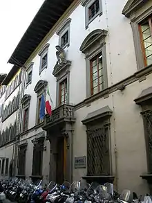 It was next bought by the rich British tutor and librarian Sir Francis Joseph Sloane, son of an expatriate Scottish banker. Sloane was the owner of the Villa Medicea di Careggi and provided most of the funding for the new façade for Santa Croce Basilica.[1] The palazzo's next owners were the Bouterline family, the Banca Immobiliaire, the Italian Commercial Bank and the Pinucci family. The Italian National Bank bought it in 1929 and took on Vittorio Tognetti to repair and redesign it - it thus became INAIL's regional office in Florence. Damaged during the Second World War, it underwent several postwar restorations, the last of which ended in 1970.